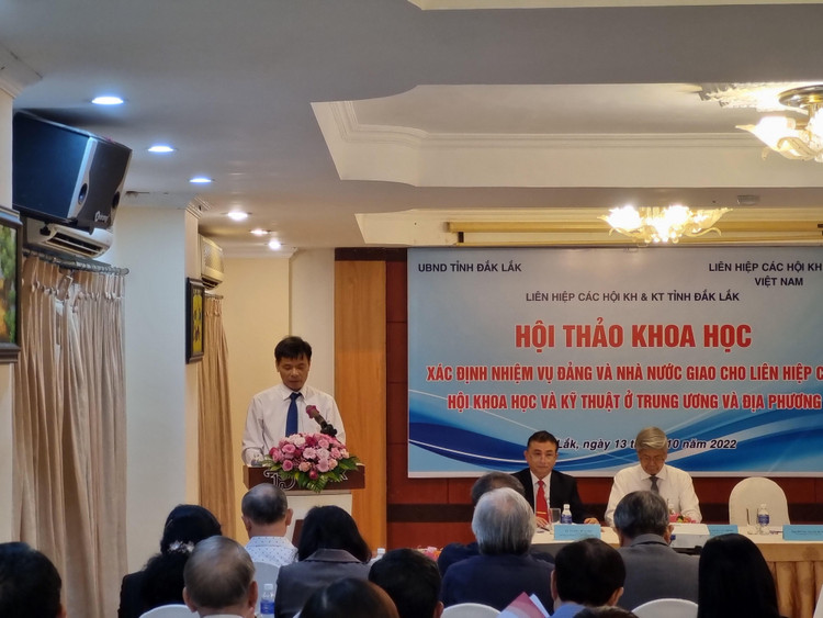 TS Vương Hữu Nhi – chủ tịch LHCHKT&KT Đắk Lắk phát biểu tại Hội thảo. |