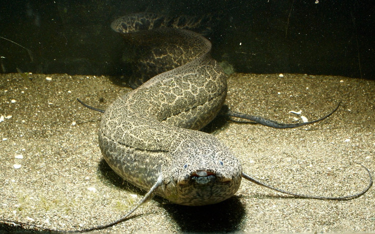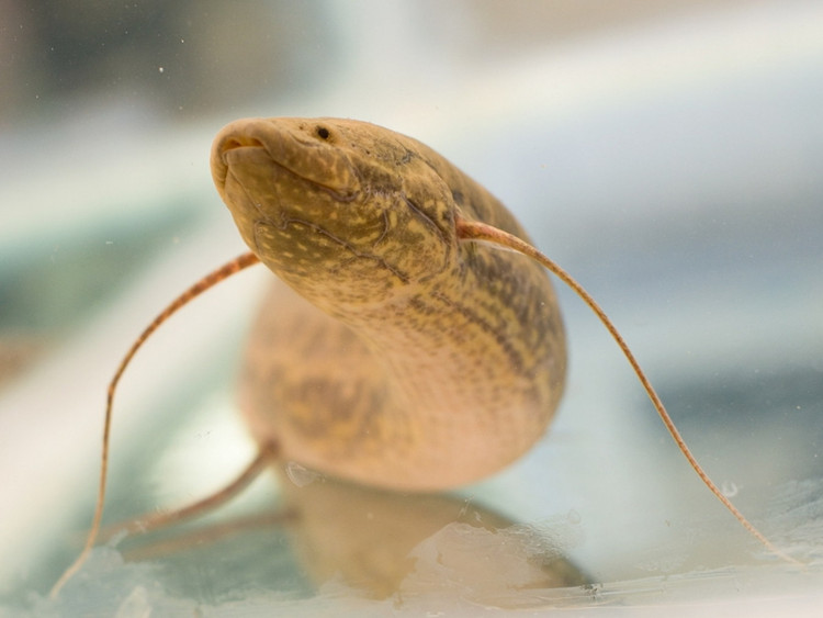 Sinh sống ở các sông hồ thuộc khu vực châu Phi hạ Sahara, Cá phổi châu Phi (Protopterus) là một chi gồm các loài cá có đặc điểm sinh học kỳ lạ bậc nhất thế giới. Ảnh: Bluegrassaquatics.com.