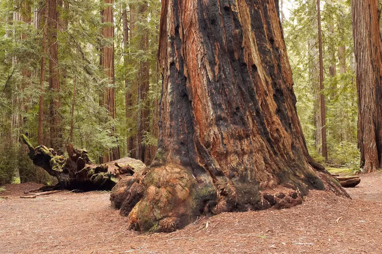 Điều kỳ diệu của Sequoia sempervirens không chỉ nằm ở chiều cao mà còn ở tuổi thọ đáng kinh ngạc. Nhiều cây có thể sống hơn 2.000 năm, tồn tại qua vô số biến động của thiên nhiên và lịch sử nhân loại. Vỏ cây dày, mềm và chứa nhiều tannin giúp chúng chống lại sâu bệnh và thậm chí cả cháy rừng. Khi hỏa hoạn xảy ra, lớp vỏ này như một “áo giáp” tự nhiên, bảo vệ phần thân bên trong và giúp cây tiếp tục sinh trưởng.