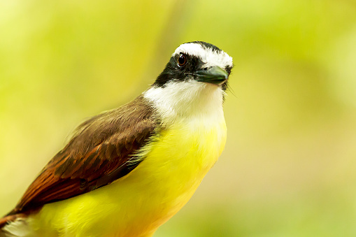 Great Kiskadee có chiều dài từ 25 - 28 cm và cân nặng từ 53 - 71,5gr. Chúng có đầu đen với dải trắng mạnh mẽ và một dải vàng ẩn.