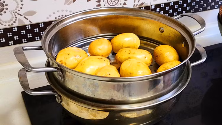 Hấp khoai tây cỡ này mất khoảng nửa tiếng. Thời gian cụ thể nên điều chỉnh theo kích thước khoai tây bạn sử dụng. Nếu bạn không chắc chắn, bạn có thể thử chọc khoai tây bằng đũa. Nếu bạn có thể dễ dàng đâm thủng khoai tây, điều đó có nghĩa là khoai tây đã chín.