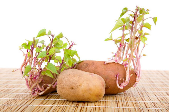 Nếu thấy khoai có mầm, hãy khoét bỏ phần mầm đi và ngâm khoai trong nước muối rồi mới sử dụng. Ngoài ra khi mua khoai lang về, chúng ta nên bảo quản khoai ở nơi khô ráo, mát mẻ, tránh ánh sáng, gió lùa, nơi có không khí nóng và ẩm sẽ khiến khoai mau chóng mọc mầm.