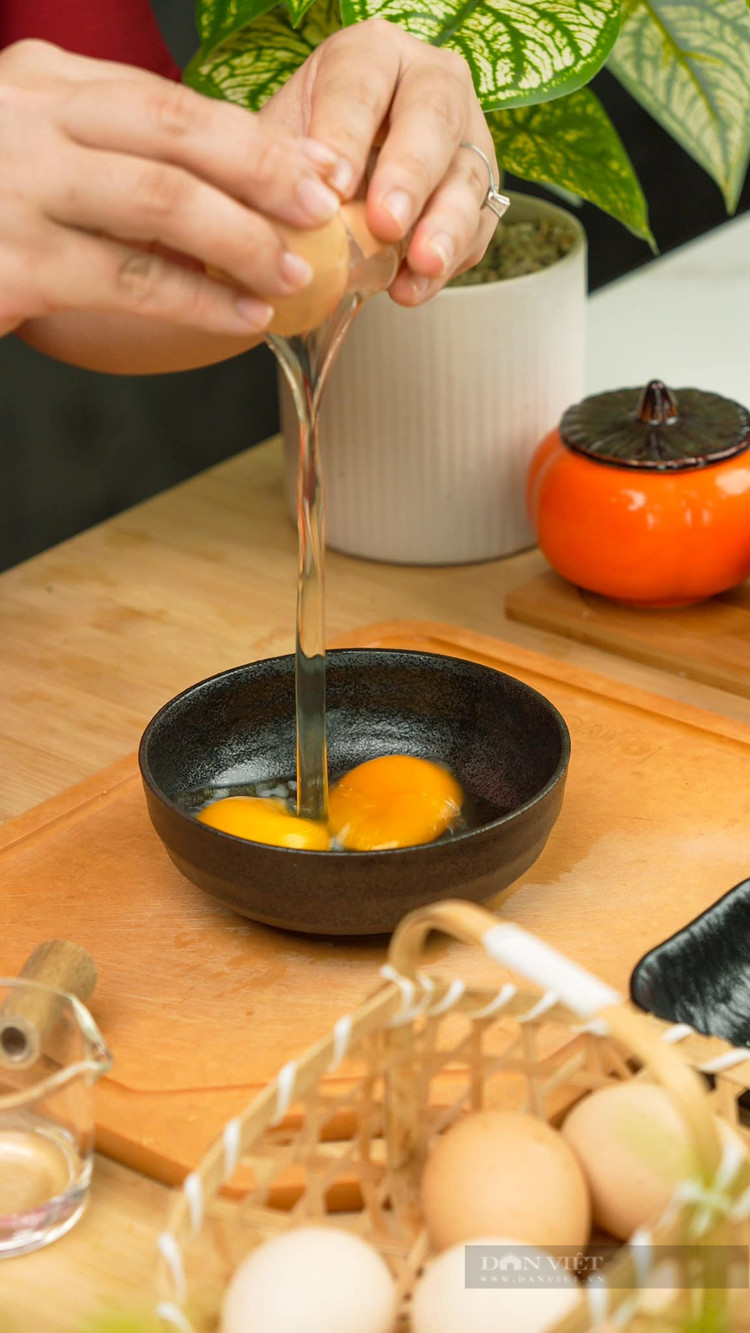 - Trong lúc đợi nước sôi đập 2 quả trứng gà, 2gr hạt nêm, 10ml nước lọc đánh tan.