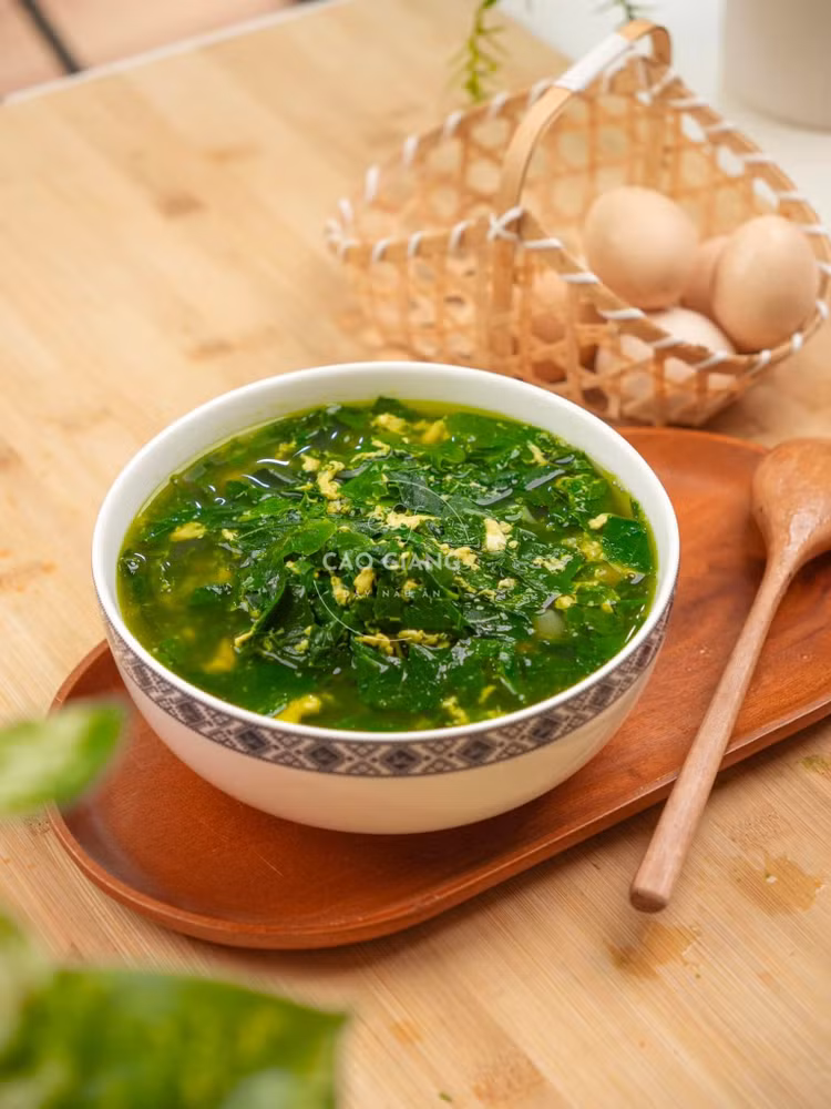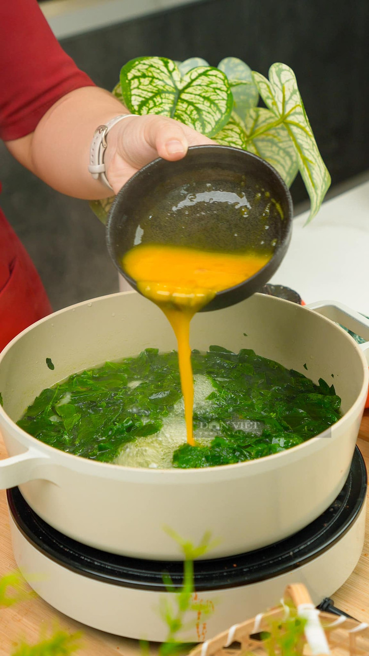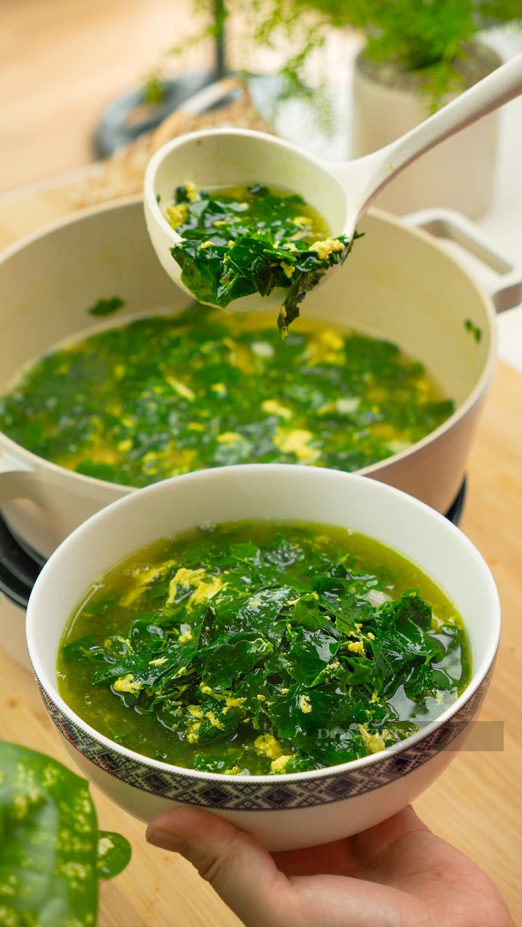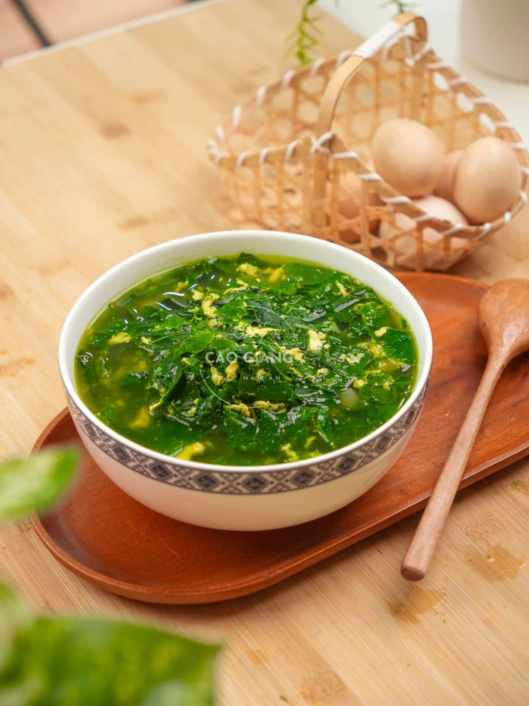 Canh rau ngót nấu trứng xanh mướt điểm vàng vàng.