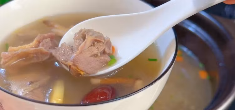 - Cuối cùng, thêm một chút muối vừa miệng là có thể thưởng thức. Nước súp tươi ngon, thịt mềm, không tanh hay ngấy, bổ dưỡng.