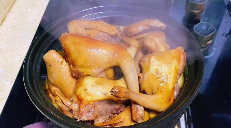 - Sau khi nước sôi, hớt bọt rồi vặn lửa nhỏ đun tiếp trong 1 giờ.