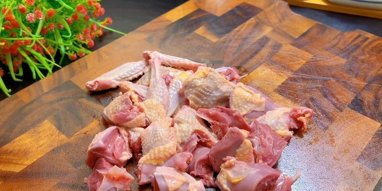 - Chuẩn bị 2 con chim bồ câu đã sơ chế, cắt bỏ chân rồi cắt thành 4 miếng nhỏ.