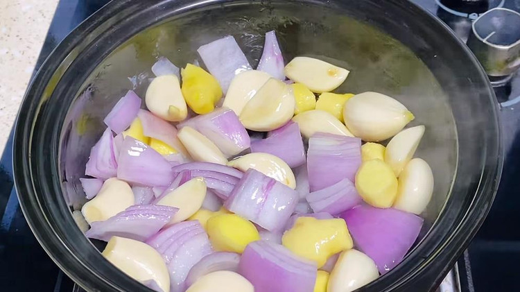 - Chuẩn bị nồi, đổ dầu ăn vào nồi, đun nóng dầu, cho gừng, tỏi, hành vào xào thơm.