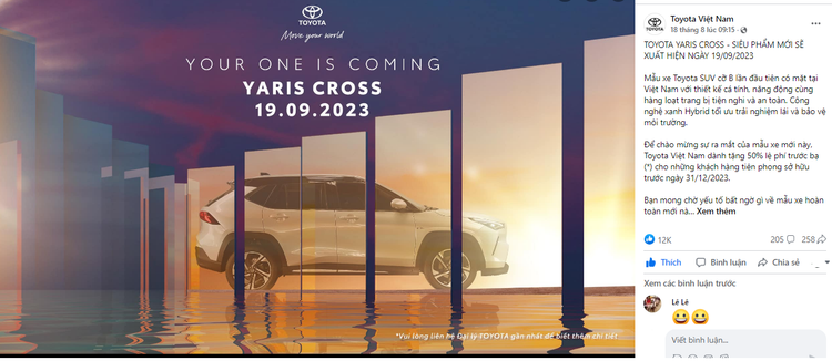 Chưa chính thức ra mắt nhưng Yaris Cross đã được kích cầu bằng việc hỗ trợ 50% lệ phí trước bạ từ khi mở bán đến hết 2023.