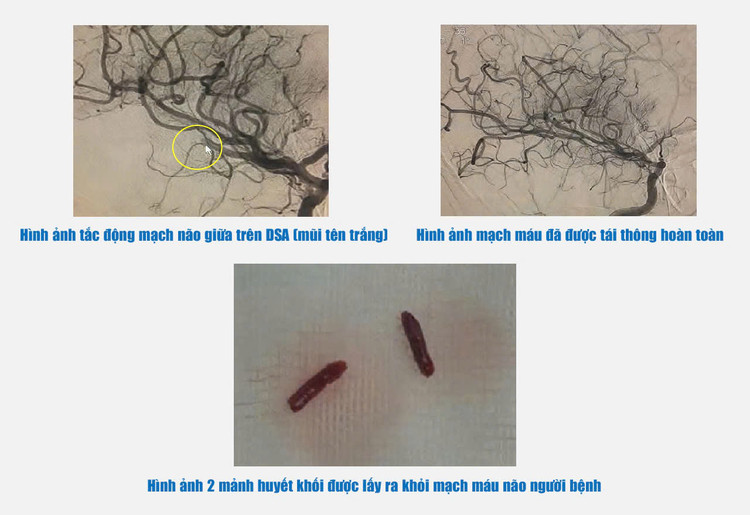 Sau 15 phút can thiệp, ê-kíp đã lấy ra 2 mảnh huyết khối, giúp mạch máu não của người bệnh tái thông hoàn toàn. Nhờ nỗ lực và quyết tâm của các bác sĩ và gia đình, người bệnh đã có những cải thiện tích cực ngay sau can thiệp: Ý thức cải thiện hơn, phản ứng tốt hơn và có thể trả lời chính xác câu hỏi.