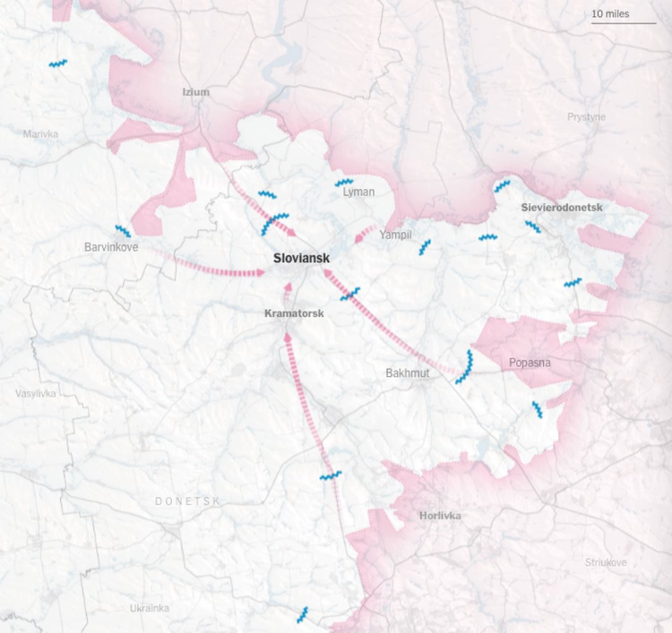 Lực lượng dân quân Donetsk cũng tuyên bố, tính đến ngày 9/6, quân đội Nga, dân quân Donetsk giành được quyền kiểm soát 231 khu định cư, bao gồm 2 thị trấn Svyatogorsk và Tatyanovka mới giành được.