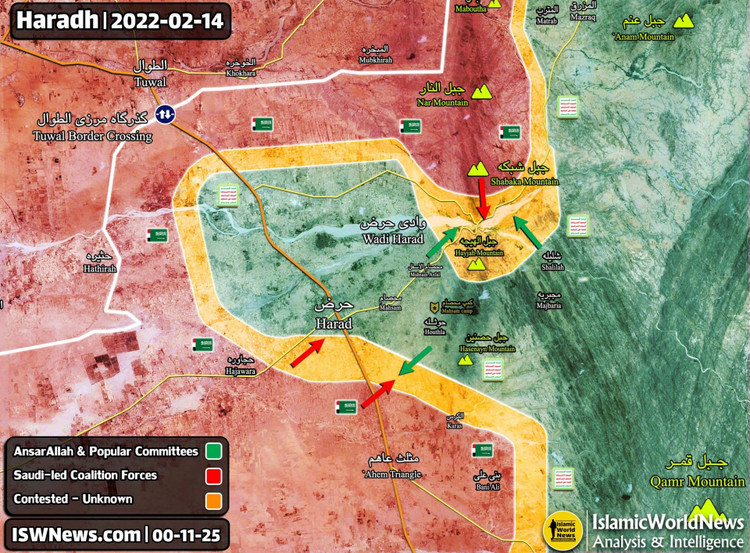 Lực lượng Houthi bắt đầu cuộc phản công ngày 11/2, nhằm chọc thủng vòng vây của nhóm Quân khu 5 thuộc Quân đội Quốc gia Yemen của tổng thống lưu vong Mansoor Hadi do Ả rập Xê út hậu thuẫn quanh thị trấn Haradh.