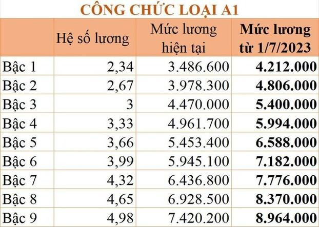 Lương công chức tăng lên bao nhiêu từ ngày 1/7/2023?