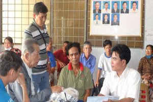 BS Trạm trưởng Trạm y tế (người mặc áo trắng) xã Tân Long, huyện Thanh Bình, tỉnh Đồng Tháp đang xem kết quả khám bệnh của người bệnh.