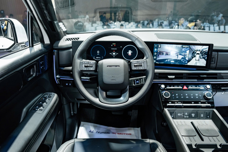 Điểm đặc biệt nhất bên trong Hyundai SantaFe 2024 có lẽ là thiết kế 6 chỗ với hàng ghế giữa thương gia tách biệt, tích hợp nhiều tính năng hiện đại. Ngoài ra, xe còn được trang bị cửa sổ trời độc lập, gương chiếu hậu (khoang lái) kỹ thuật số, sạc không dây, điều hòa ba vùng độc lập, gạt mưa tự động, phanh tay điện tử, giữ phanh tự động, màn hình HUD sau kính lái, đèn viền nội thất.