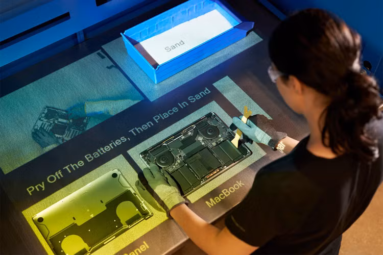 Apple cho biết MacBook Pro mới sử dụng 45% vật liệu tái chế, trong đó 100% nhôm vỏ ngoài và 100% cobalt trong pin là tái chế. Bao bì hoàn toàn từ sợi giấy.