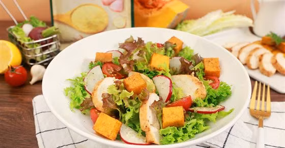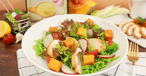 Có thể kết hợp bí đỏ với nhiều loại rau củ quả khác nhau, tùy theo sở thích, chẳng hạn như cà chua, dưa chuột, xà lách, hạt chia... Để món ăn thêm hấp dẫn, hãy trộn đều các nguyên liệu cùng giấm, dầu ô liu, muối, tiêu và thưởng thức. Salad bí đỏ phù hợp để dùng cho bữa sáng, bữa trưa hoặc bữa tối giảm cân.