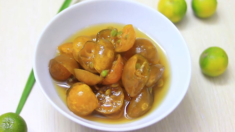 Quất rửa sạch, cắt đôi và cho vào chén. Đường phèn giã nhỏ, cho vào chén tắc, sau đó hấp cách thủy 15 - 20 phút.