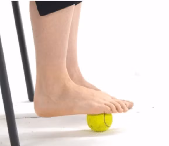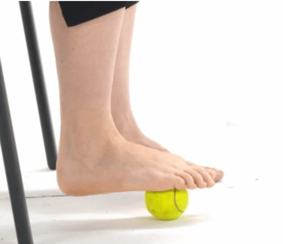 Bài tập lăn bóng bằng chân sẽ giúp giảm sự khó chịu, đau nhức do bàn chân bẹt. Người tập có thể lăn chân với bóng tennis hoặc bóng golf.