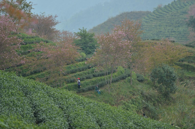 Nơi ngắm mai anh đào đẹp nhất là đồi chè Ô Long. Nguồn ảnh: Chu Đức Giang |