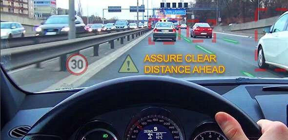HUDs hoạt động bằng phương pháp chiếu ảnh kỹ thuật số 2D hoặc 3D trong suốt về thông tin điều hướng và cảnh báo nguy hiểm, lên kính chắn gió của xe. Những hình ảnh được chiếu này hợp nhất với tầm nhìn của người lái xe về tuyến đường phía trước. HUD của kính chắn gió, được thiết lập để người lái xe không cần phải dời mắt ra khỏi đường, có thể đọc các thông tin liên quan, kịp thời. Công nghệ này giúp người lái chú ý trên đường, thay vì nhìn xuống bảng điều khiển hoặc hệ thống định vị.