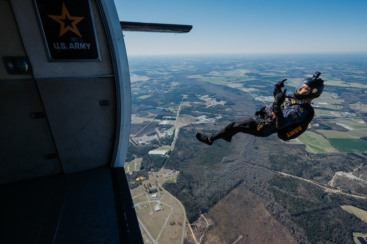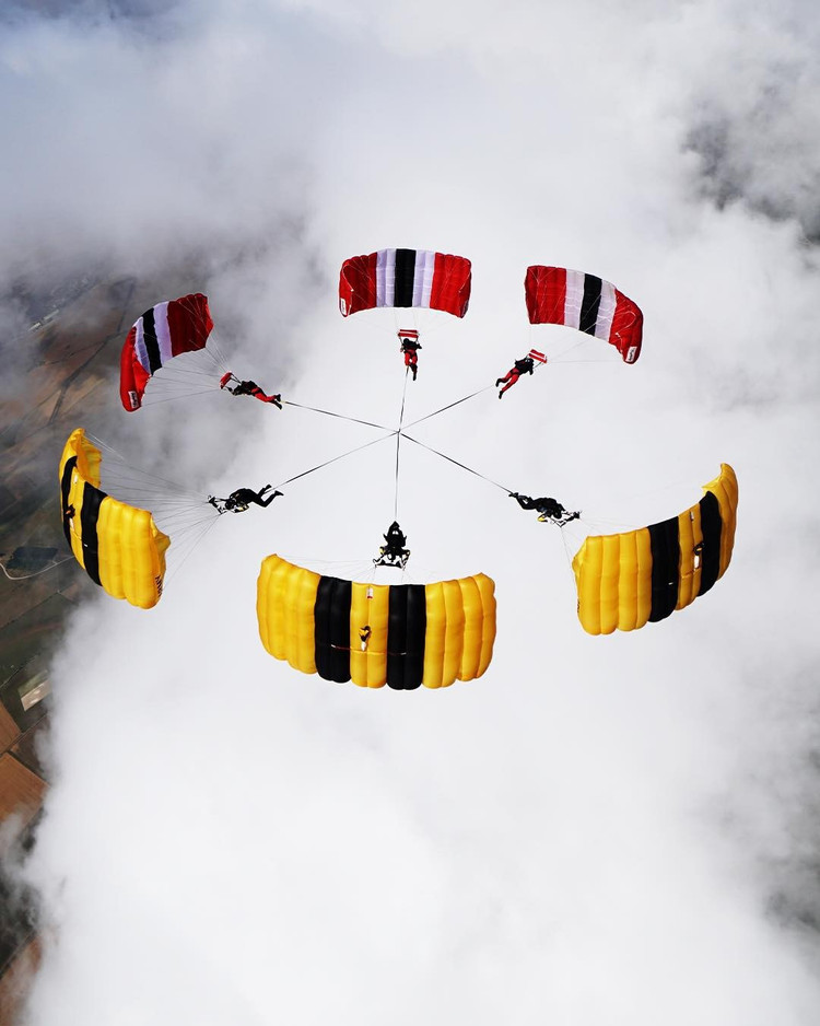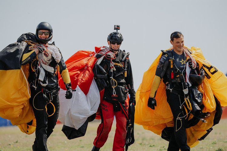 Điều đó đã thay đổi vào năm 2025, khi một đợt triển khai huấn luyện chung với Đội Nhảy dù Lục quân Mỹ tạo cơ hội để chia sẻ ý tưởng. Cả hai đội bắt đầu huấn luyện cùng nhau ngay lập tức, bắt đầu với đội hình 3 hướng và dần dần tiến tới các lần thử 5 hướng. Mặc dù thiết bị gặp sự cố trong một buổi diễn tập, sự hợp tác này đã đặt nền móng cho một lần thử thành công.