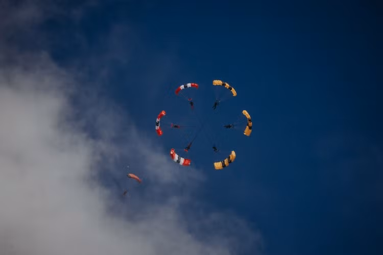 “Đối với cả hai đội, khoảnh khắc này không chỉ đánh dấu một màn trình diễn – mà còn đánh dấu một vị trí trong lịch sử nhảy dù.” Downplane—một động tác yêu cầu những người nhảy dù phải kết nối với nhau giữa không trung và bay tán dù của họ xuống dưới với tốc độ cao—đã được coi là một trong những đội hình tán dù khó nhất trong môn nhảy dù.