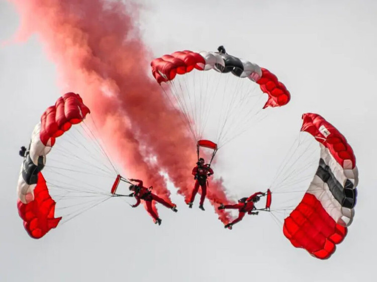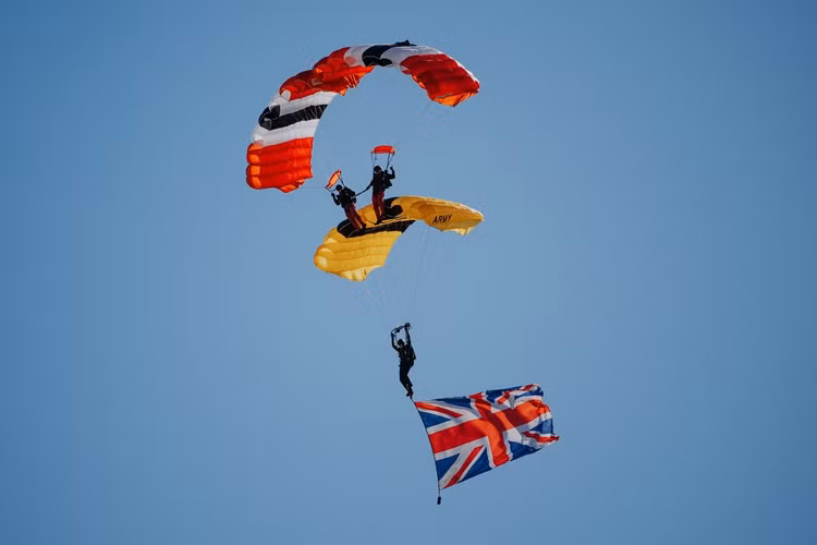 Đội Golden Knights và Red Devils, hai đội nhảy dù tinh nhuệ của quân đội Mỹ và Anh, đã cùng nhau thực hiện cuộc diễn tập này.