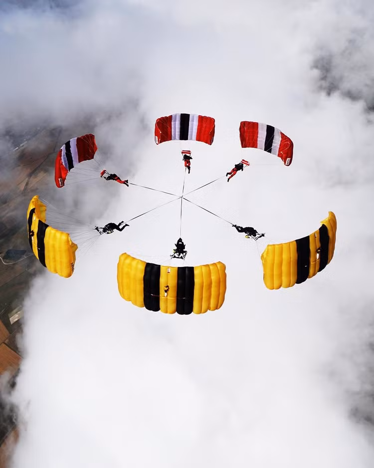 Họ đã tạo ra những khoảng khắc mãn nhãn. Được gọi là The Hex, đội hình chưa từng có này có sáu người nhảy dù được kết nối bằng các đầu dò theo cấu hình lục giác, đồng loạt hạ xuống trong khi trình diễn một màn trình diễn tốc độ cao ấn tượng cho khán giả bên dưới tại Sân bay Netheravon ở Wiltshire.