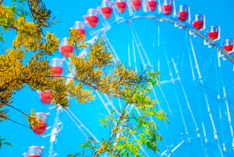 Du khách không chỉ được trải nghiệm ngắm toàn cảnh công viên và thành phố từ trên cao bằng vòng quay Sun Wheel. Mà còn được "săn" cảnh hoa sưa - những vệt vàng ở đằng xa, những góc ngắm hoa sưa có 1-0-2 ở thành phố này.