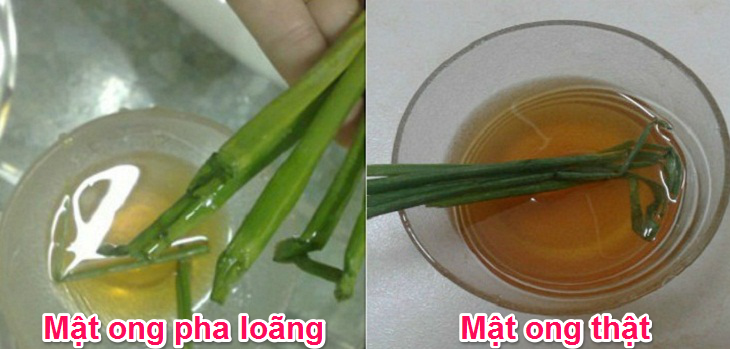 Ngâm một cọng hành tươi vào cốc đựng mật ong, nếu sau vài giờ, cọng hành héo đi thì đó là mật ong thật. Mật ong giả bị pha loãng với nước sẽ không làm cọng hành bị héo.
