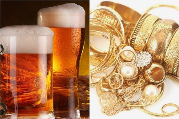 Thấm ướt một miếng vải với chút bia và chà xát lên đồ bằng vàng (không được lẫn đá) để giúp đồ vật sáng bóng trở lại. Sau đó, dùng một miếng vải mềm khác để lau khô.