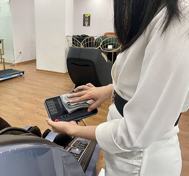 Đối với bảng điều khiển của ghế massage, bạn tuyệt đối không được để chúng tiếp xúc với nước vì sẽ làm ảnh hưởng đến các vi mạch điện tử bên trong đó. Để vệ sinh bảng điều khiển, bạn chỉ nên dùng khăn khô để lau phần này.