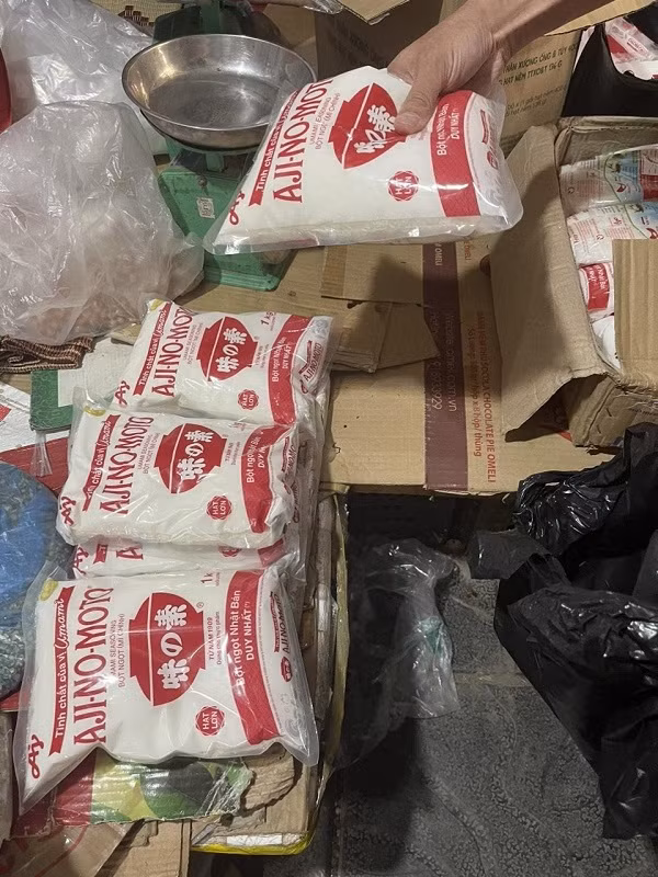 | Tang vật mì chính giả các thương hiệu nổi tiếng như Meizan; Ajinomoto bị cơ quan chức năng thu giữ. Nguồn: QLTT |