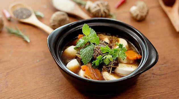 Canh ba ba, câu kỷ: Ba ba 1 con, hạt nữ trinh 30g, hạt câu kỷ 30g, sơn chu du 30g. Hành, gừng, bột ngọt, muối lượng thích hợp. Ba ba bỏ đầu và nội tạng, sau khi rửa sạch sẽ cho vào nồi đất. Hạt nữ trinh, hạt câu kỷ, sơn chu du rửa sạch bỏ vào túi vải thưa cột chặt miệng lại. Hành cắt đoạn, gừng xắt miếng. Đổ một lượng nước vừa phải vào nồi đất, bỏ túi thuốc trên cùng với hành, gừng, ít muối vào nồi, dùng lửa lớn nấu sôi sau đó dùng lửa nhỏ cho đến khi ba ba chín mềm thì vớt túi thuốc ra. Nêm tý bột ngọt vừa ăn là được. Ăn thịt ba ba, uống canh. Tác dụng bồi bổ can thận, phòng ung thư, hoặc dùng bổ trợ cho việc trị ung thư gan, ung thư bàng quang.