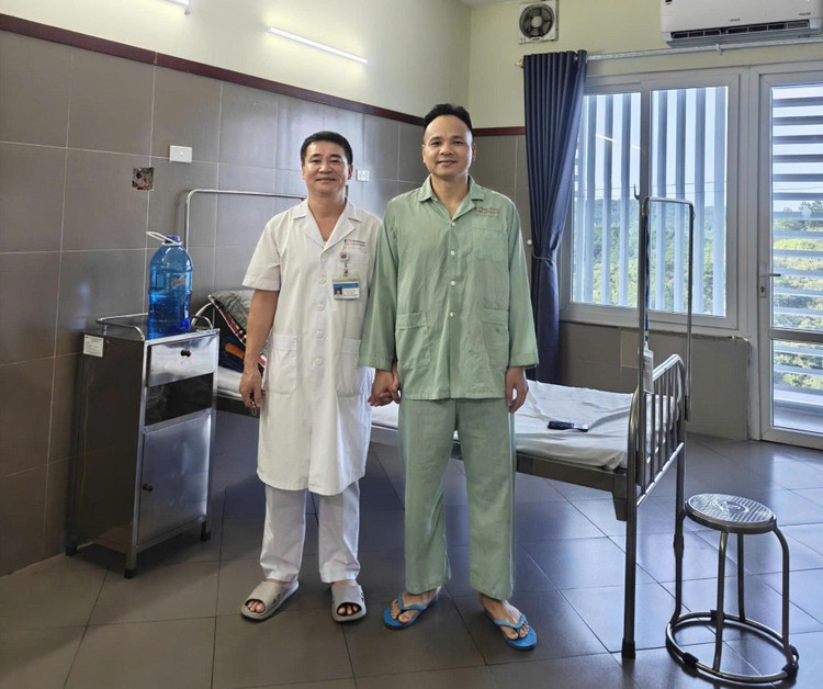Bác sĩ CKI Hà Đình Nghị - Trưởng khoa Nội Tim mạch chụp cùng bệnh nhân trước khi xuất viện/ Ảnh Bệnh viện Đa khoa tỉnh Lạng Sơn.