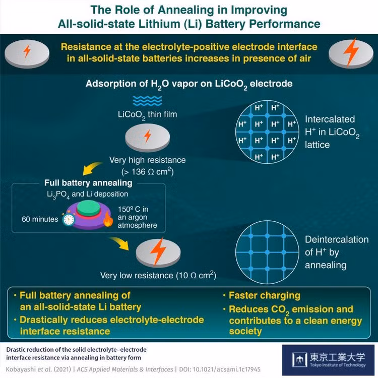 Nhóm nghiên cứu thiết lập thành công một phương pháp khôi phục điện trở giao diện thấp đồng thời làm sáng tỏ cơ chế khiến pin suy giảm dung lượng và hiệu suất, cung cấp những hiểu biết quan trọng về quy trình sản xuất pin thể rắn hiệu suất cao.