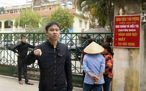 Bệnh viện 7 Hải Phòng đóng cửa và có nhiều thanh niên đứng canh gác sau khi chị Trang tử vong.