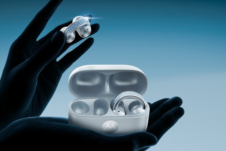 Cặp tai nghe Motorola Buds Loop được đính pha lê Swarovski trên móc tai. Tai nghe sở hữu driver 12mm với công nghệ điều chỉnh âm thanh Bose, mang lại âm thanh không gian và thời lượng pin lên đến 37 giờ.