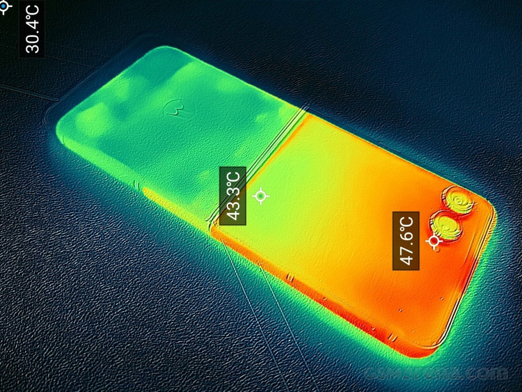 Nhiệt độ bề mặt khi sử dụng lâu dài lên đến khoảng 48 độ C. Dù khá cao nhưng điểm nóng tập trung ở vùng ít tiếp xúc tay nên vẫn trong ngưỡng chấp nhận được.
