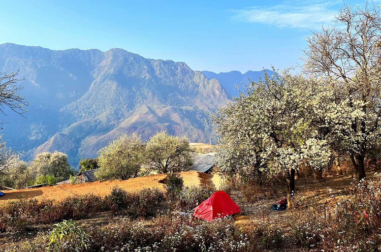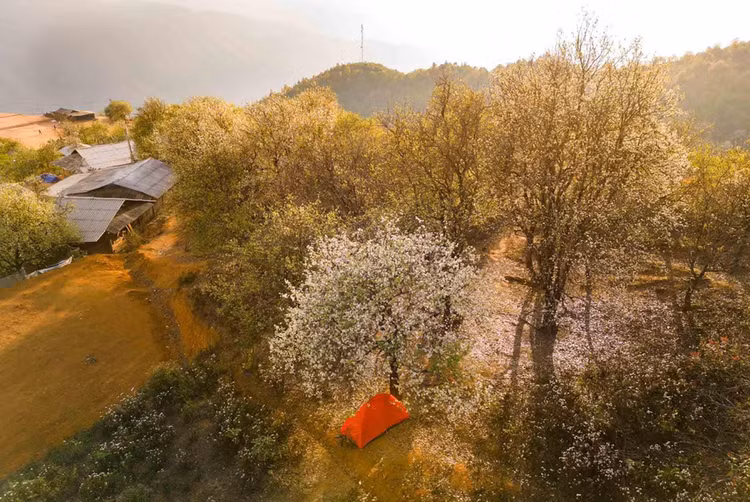 Ngoài thăm thú ngắm cảnh, du khách có thể cắm trại giữa những tán hoa sơn tra nở rộ. Nguồn ảnh: Trần Trung Hiếu