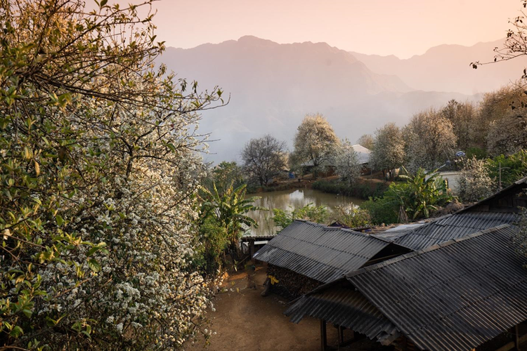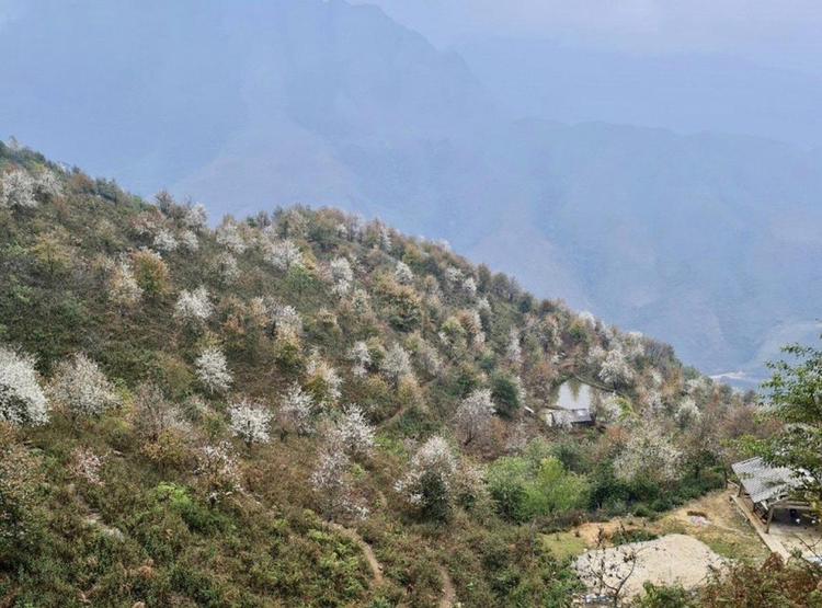 Hoa sơn tra nở trắng ở bản Nậm Nghiệp. Nguồn ảnh: SGGP