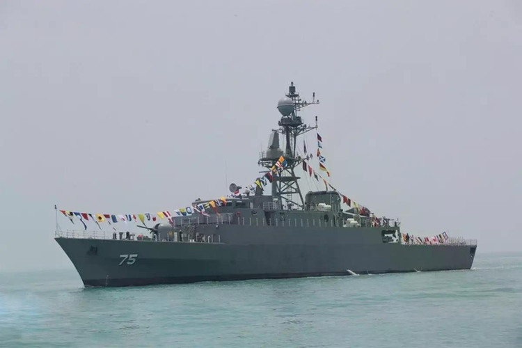 Tàu khu trục IRIS Dena của Iran trong cuộc duyệt binh Lễ duyệt binh hải quân quốc tế. Ảnh: Indian Times
