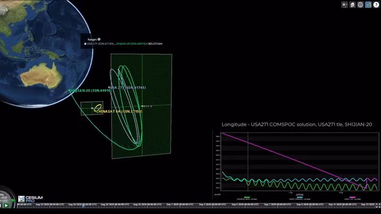 Tháng 7, Shijian 20, vệ tinh liên lạc nặng nhất và tiên tiến nhất của Trung Quốc, bị một vệ tinh giám sát không gian Mỹ, USA 271 di chuyển song song và giám sát.