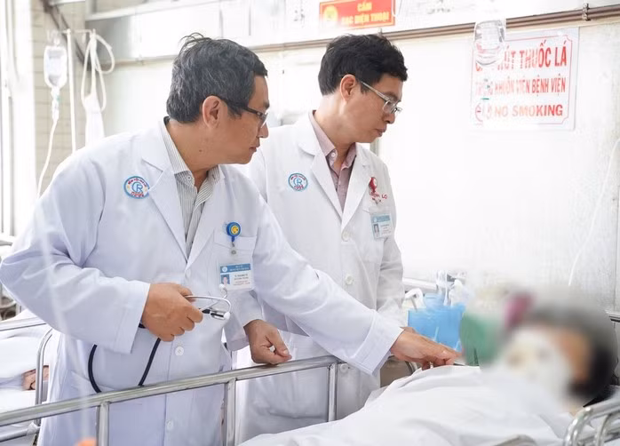 Các bác sĩ thăm khám cho bệnh nhân N.T.P. (63 tuổi). Ảnh BV