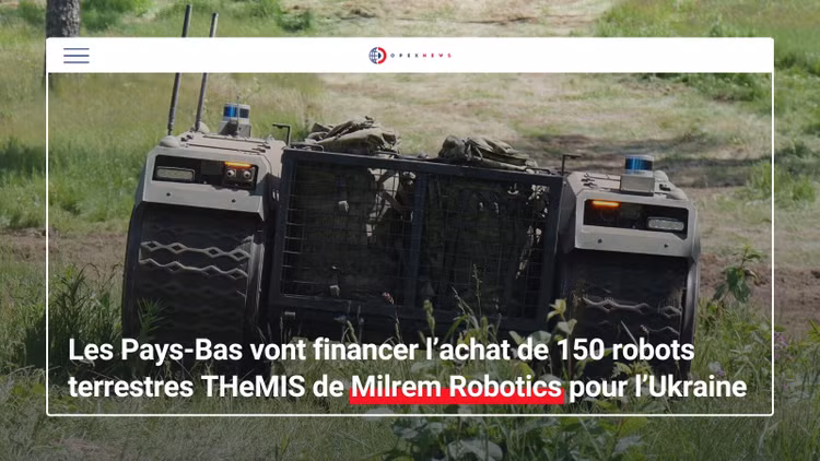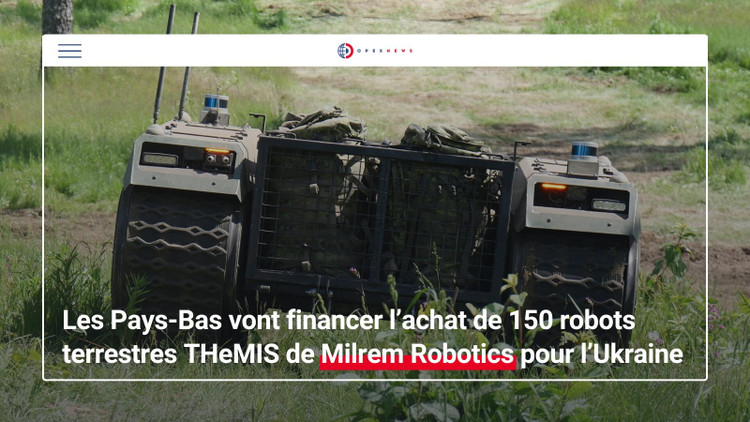 Hà Lan tuyên bố sẽ tặng hơn 150 xe mặt đất không người lái THeMIS (UGV) cho Ukraine. Khoản quyên góp này lần đầu tiên được tiết lộ vào tháng 9 mà không tiết lộ quốc gia tài trợ.