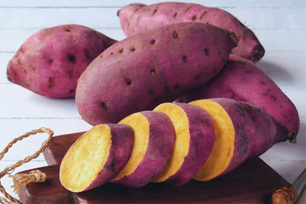 Khoai lang là thực phẩm phù hợp cho câu hỏi nên ăn gì trước khi đi ngủ để giảm cân. Khoai lang chứa hàm lượng nước cao. Ăn khoai lang giúp bù nước, hỗ trợ quá trình trao đổi chất, ngăn chặn tích tụ mỡ thừa và hỗ trợ đào thải độc tố. Ngoài ra, nhờ lượng nước cao mà ăn khoai lang giúp no lâu, giảm cảm giác thèm ăn.