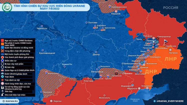 Bản đồ vùng chiến sự phía đông Ukraine ngày 7/5. Ảnh RIA. FAN