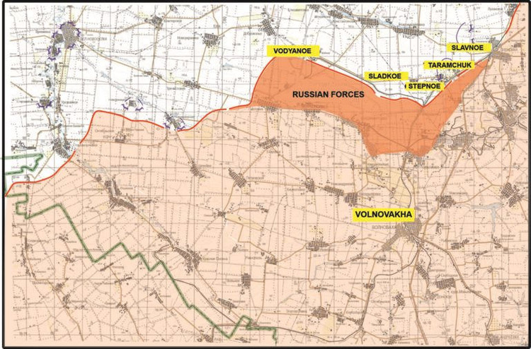 Trong tuyên bố gần đây, Bộ Quốc phòng Nga cho biết, các đơn vị quân đội Nga tiến đến phòng tuyến Vodyanoe, Sladkoe, Stepnoe, Taramchuk và Slavnoe phía bắc từ thị trấn Volnovakha.