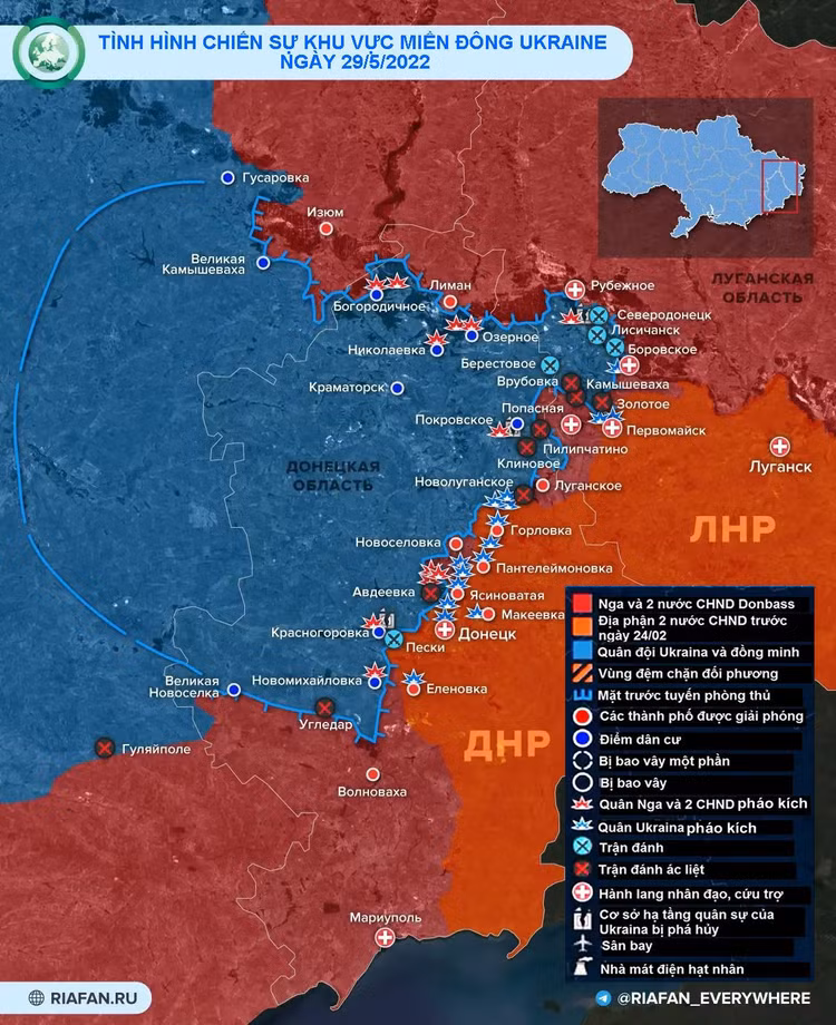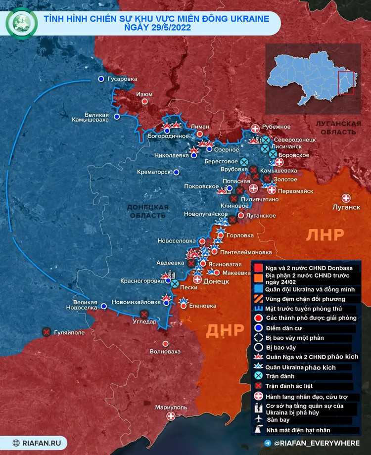 Tình hình chiến sự vùng Donbass ngày 29/5. Ảnh RIA.FAN